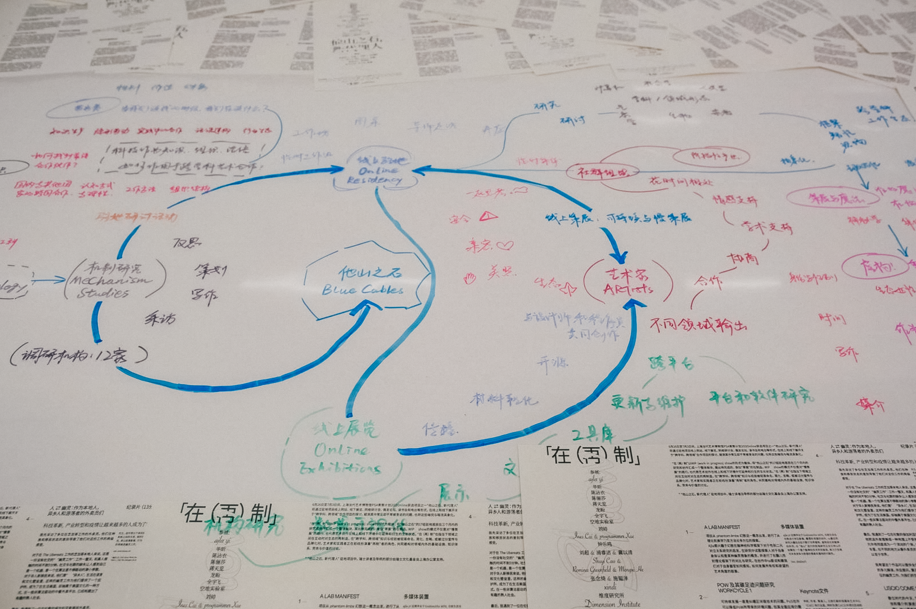 Blue Cables in Venetian Watercourse, one of two selected projects for the Power Station of Art Shanghai’s ECP (Emerging Curators Project) 2O2Online, presented a week of showcases from 26th of June to 3rd of July in the forms of online webinars, one-day WIP exhibition, off-site reading room events and podcast shows. As the residency project has been contesting the persistent yet unspoken issues among the cliched inter-/cross-/trans-disciplinary discourses and practices, the series of showcases also became the embodiments of the broken bonds among knowledge vessels which require more attention.