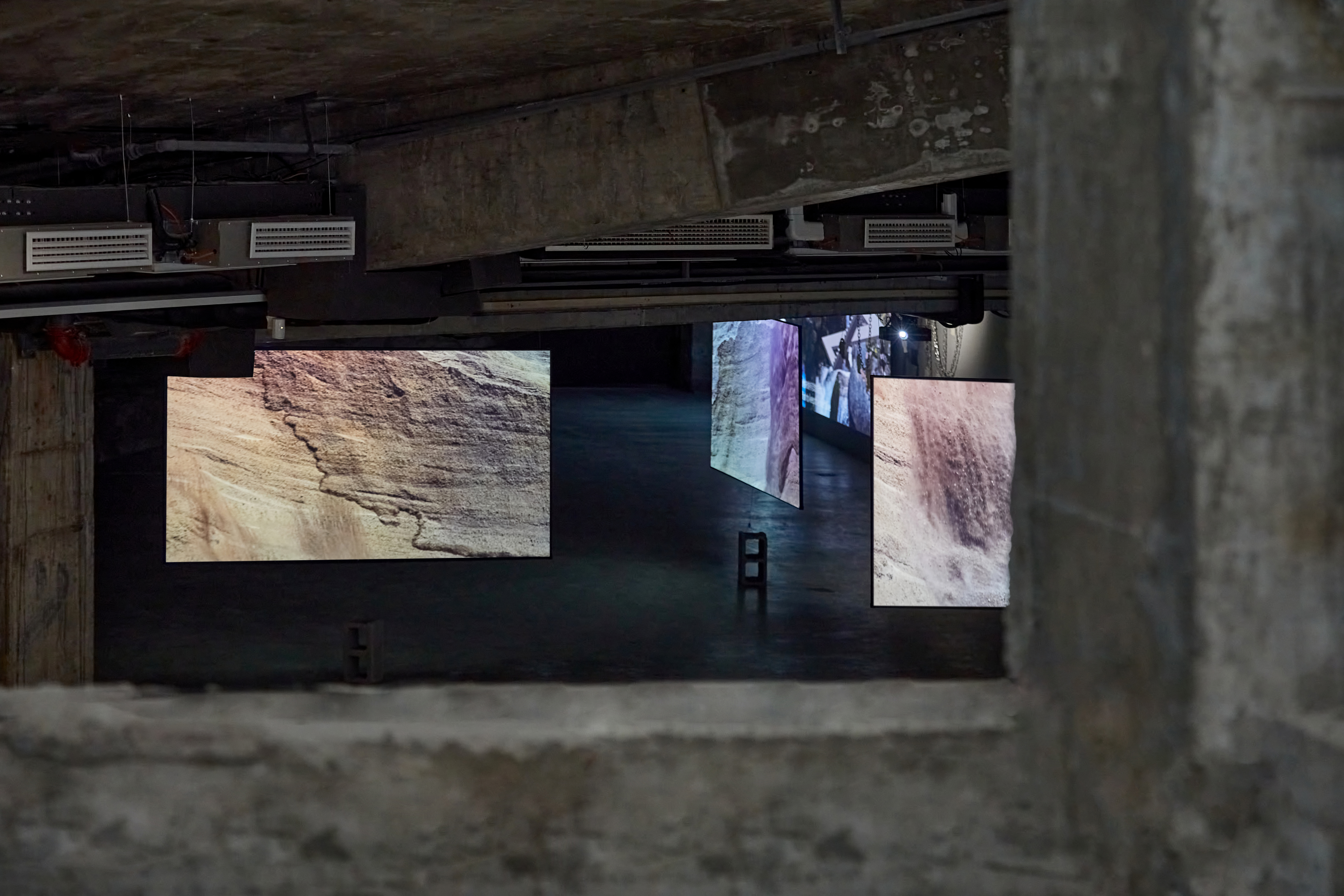 “岩间寄存,虚空的显影”(Rock Host, Infrastructuring the Void)是从龙星如与贺子珂曾持续了三年的“云下贵州”研究项目中生成的展览。这一以中国西南喀斯特山地为入口和初始样本不断发散的集体项目,通过从「云上」到「云下」的具身访问,展开了一段对包括数据中心在内的新型科技基础设施在本地与更广泛的陆地内,同地质、能源、气候、生态和人之间共存关系的松散叙述。英文中,Host既是一种「宿主」,也是一种「主机」。而物质性的岩石,在此成为了一种灵感媒介,它以深度时间中的储存容纳着数字虚空的载体,也在形塑着不同宇宙视点、自然和历史形态中的体验。